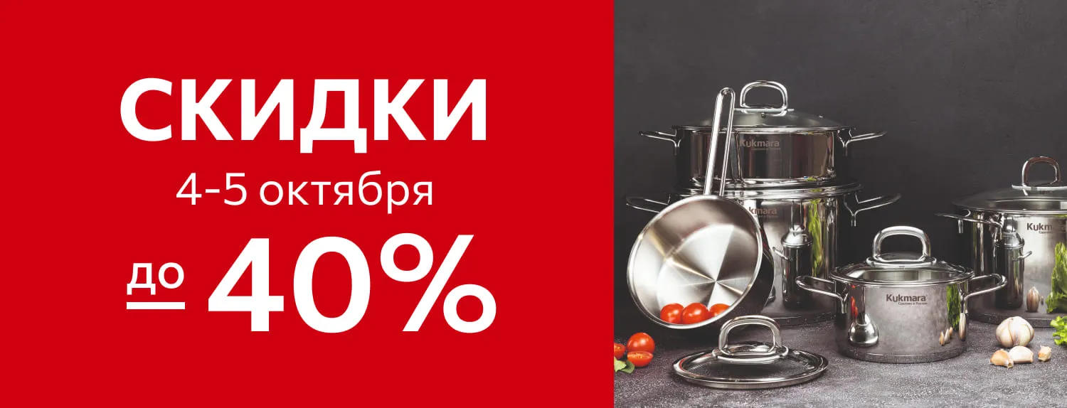 4 и 5 октября Ваша корзина пополнится выгодными находками! Успейте, пока на весь ассортимент в интернет-магазине Kukmara действует приятная скидка: